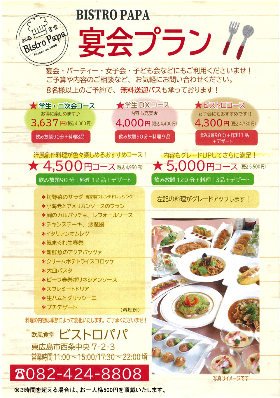 ご注文・お問い合わせ先は、ビストロパパ082-424-8808まで。